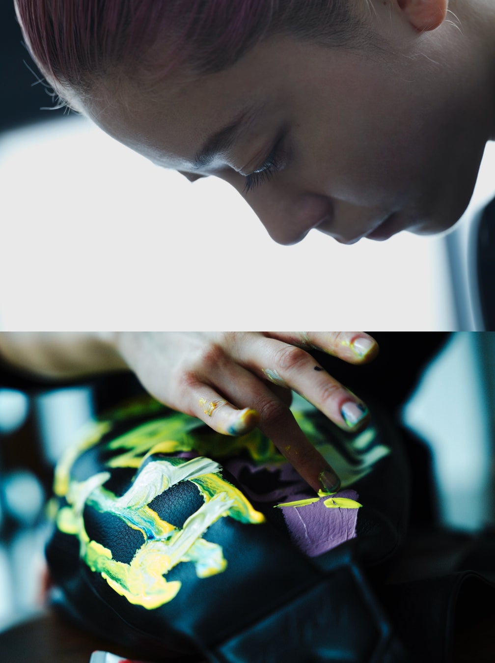 このコレクションでは、SUMIREがdiscord Yohji Yamamotoのバッグに絵画を描いたピエス・ユニックや、2つのアートワークがスモールレザーグッズに彩られています。