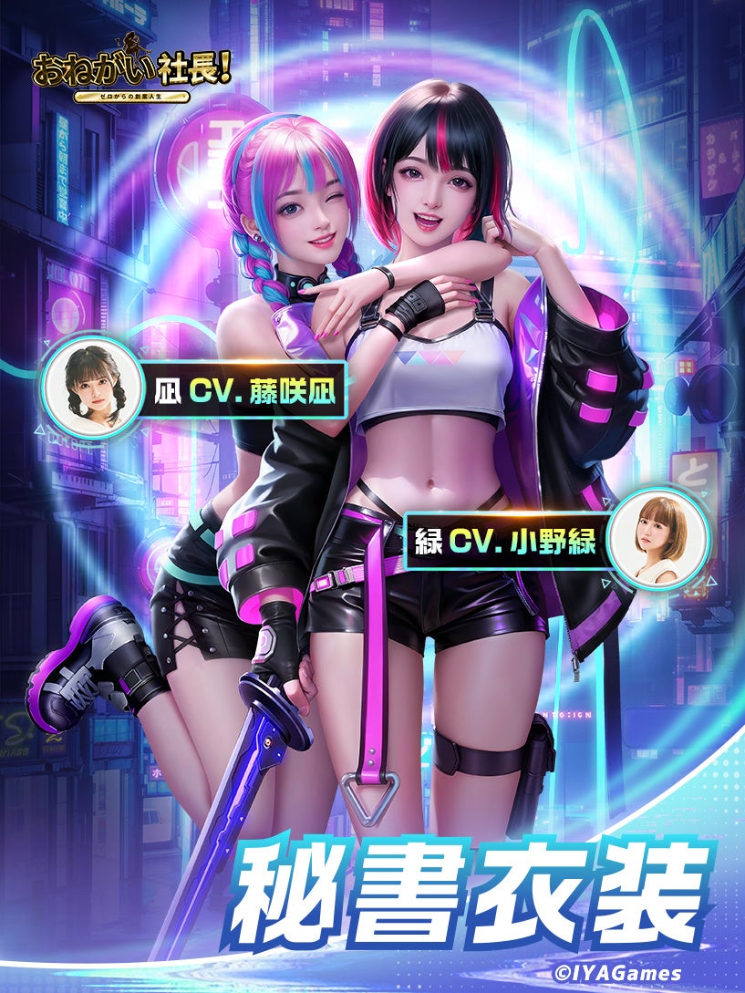 IYAGAMESは、iOS/Android向けアプリ「おねがい社長!~ゼロからの創業人生~」に、本日11月7日に「最終未来少女」の藤咲凪さんと小野緑さんが演じる新秘書「凪・緑」を追加しました。