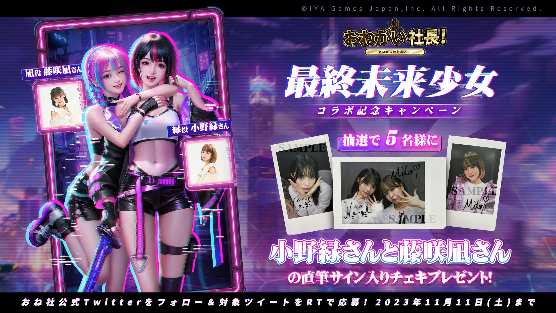 これにより、「おねがい社長!」と「最終未来少女」のコラボレーションが実現しました。