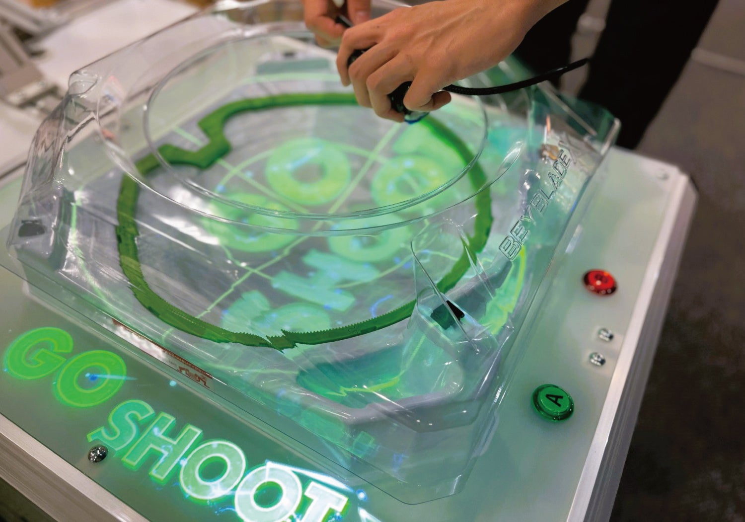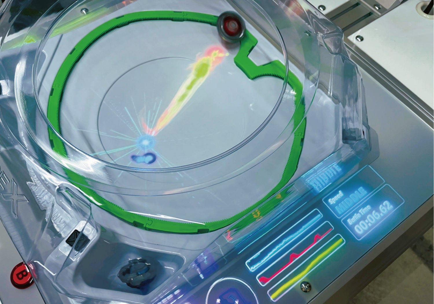 センサーがベイブレードの動きを感知し、光のプロジェクションマッピングで映し出されます。