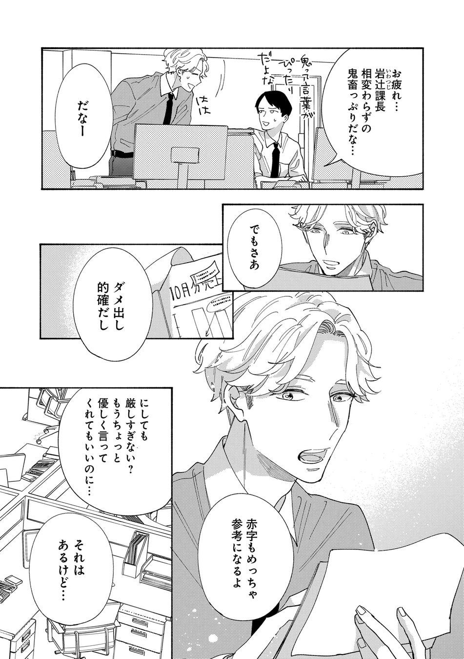 - 内海ロングさんの「俺だけ知ってる岩辻課長」では、厳しい上司とわんこ系部下のオフの姿が描かれる