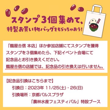 スタンプの引換は2023年11月25日(土)と26日(日)の2日間、京都パルスプラザの「農林水産フェスティバル」特設ブースで行います。