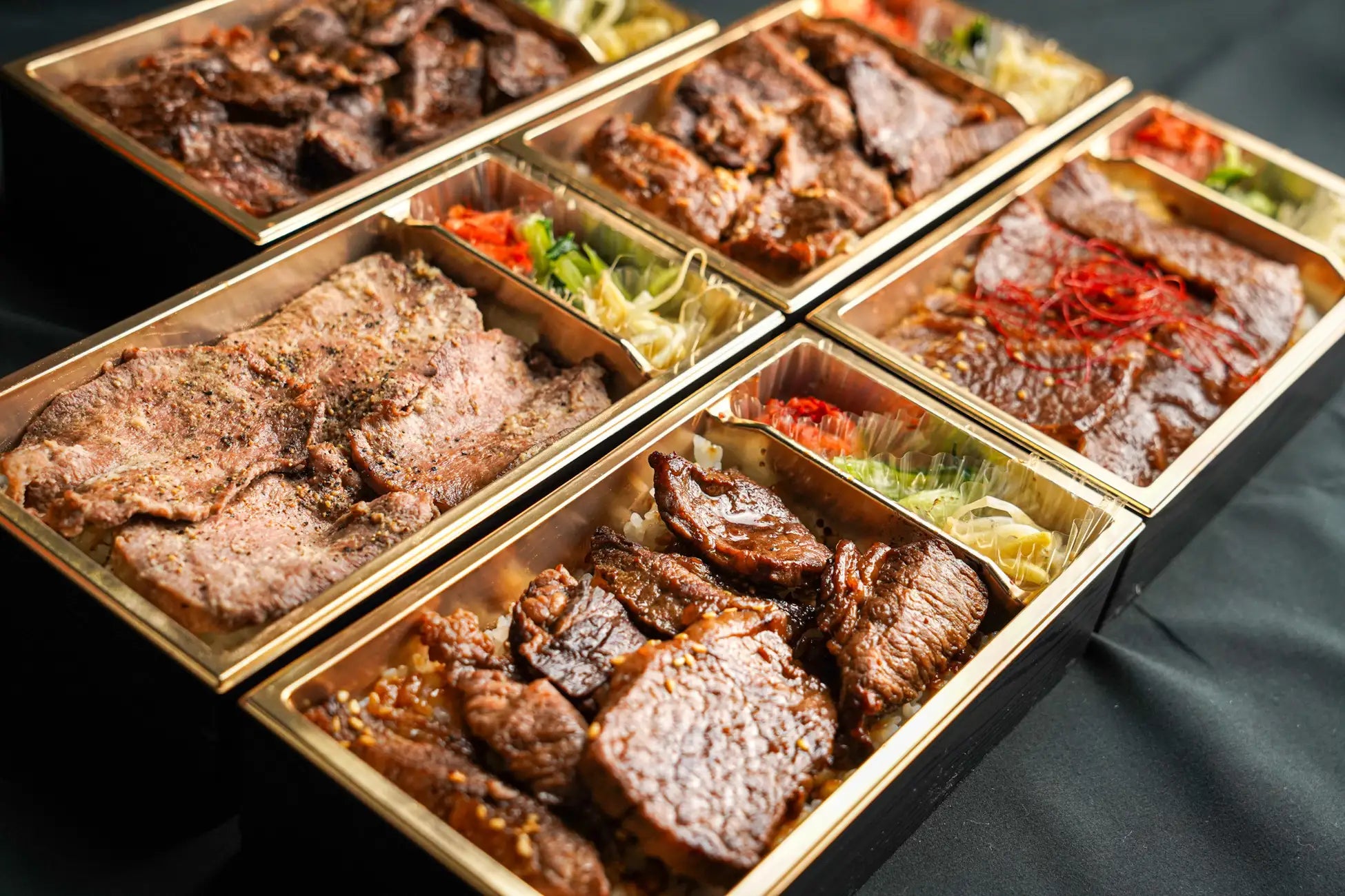 - 焼肉弁当、新潟県産つきあかり、国産牛カルビ弁当、厳選ハラミ弁当