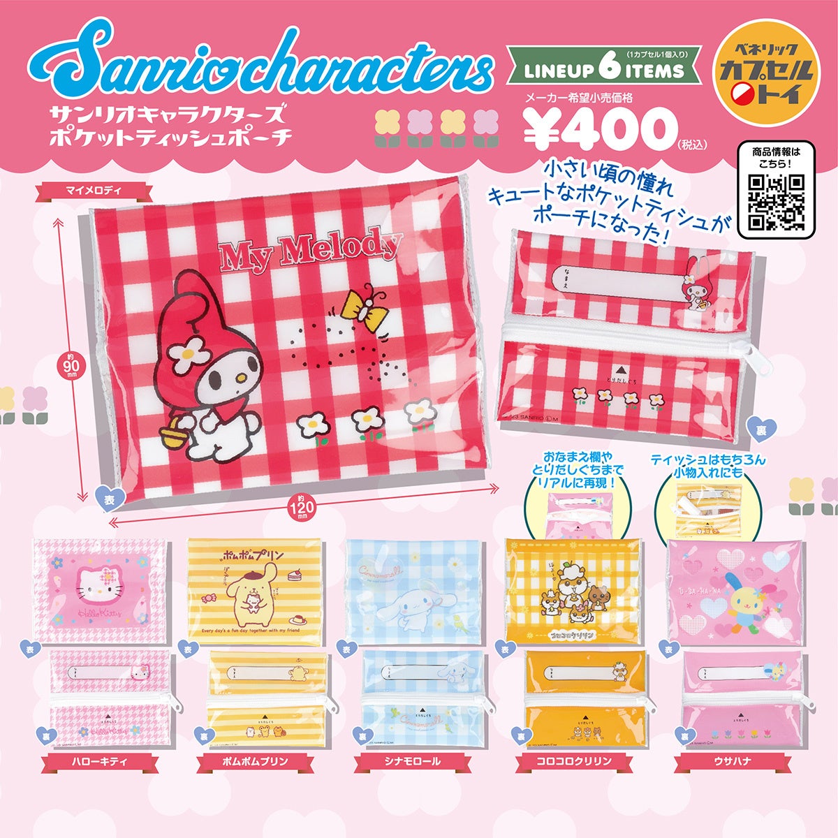 ポーチはお名前欄や取り出し口までリアルに再現されており、全6種類のキャラクターがラインアップされています。