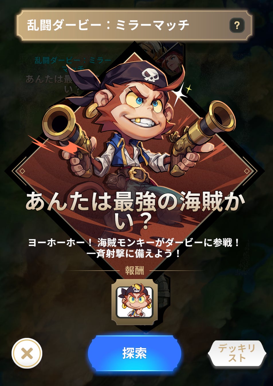 - ディフェンスダービー、海賊モンキー