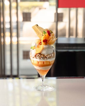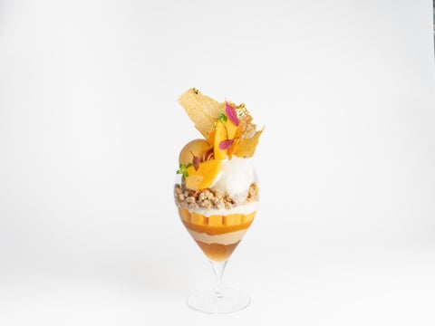 11月のパフェは、新鮮な柿を中心に上品に飾り付けられています。