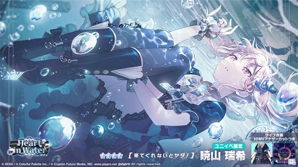 セガとColorful Paletteは、iOS/Android向けのリズム&アドベンチャーゲーム『プロジェクトセカイ カラフルステージ! feat. 初音ミク』に新たなイベント形式「ワールドリンクイベント」の「水底に影を探して」と「Heart in Waterガチャ」を開催します。