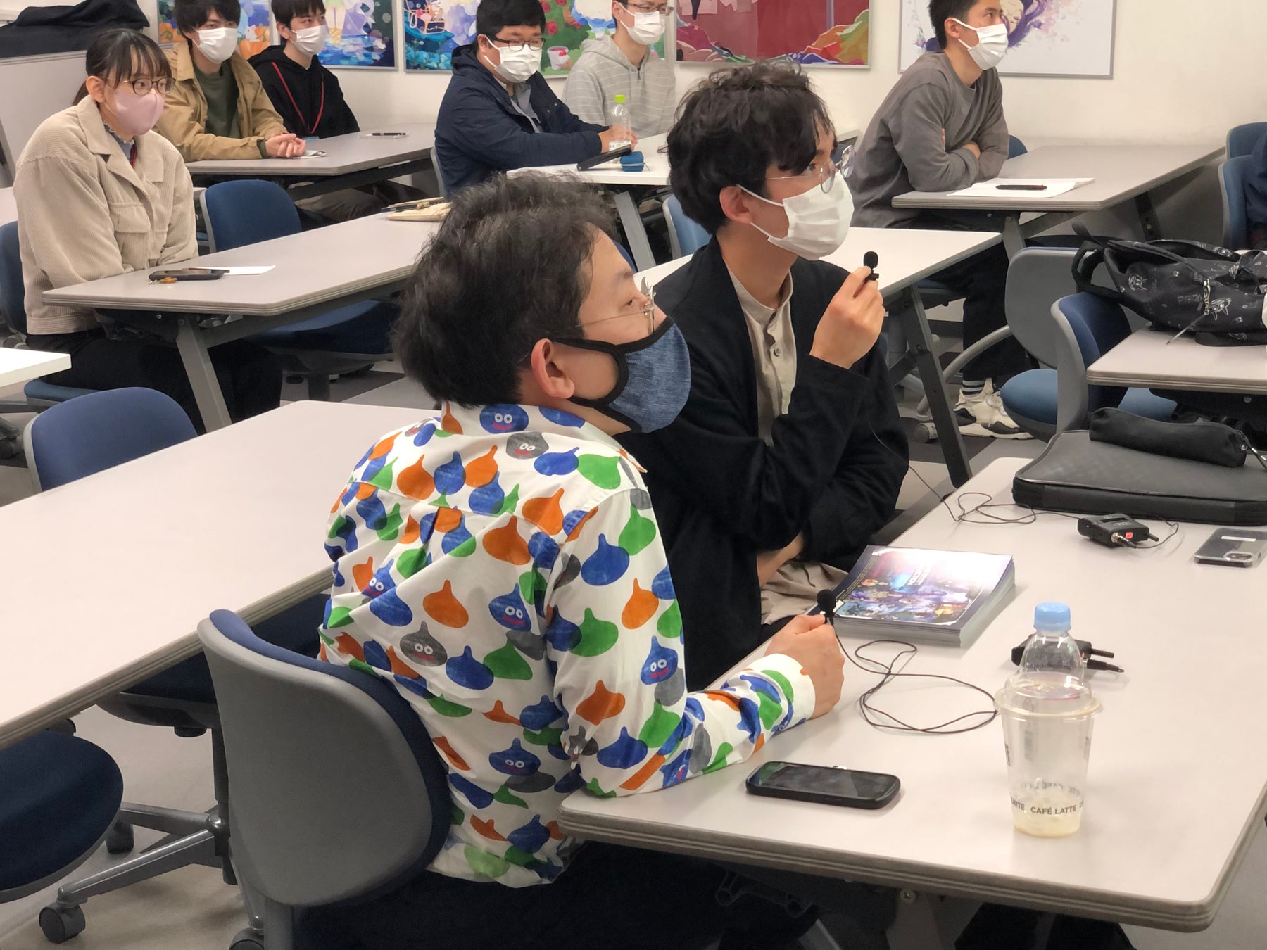 普段の授業で教えていただいている講師の先生とはまた違う視点からアドバイスをくださる平田さんと鈴木さん。「制作している中で今まさに悩んでいること、困っていること」を率直に質問する学生たちに、時間いっぱいまで貴重なアドバイスを届けてくださいました。