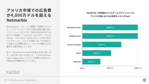 - Netmarbleの『Jackpot World™』や『Cash Frenzy』、『Marvel Contest of Champions』がトップ10に
