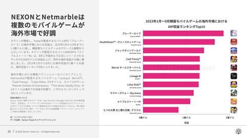 韓国は海外モバイルゲームにとっても重要な市場であり、海外発のゲームも韓国市場で好調な収益を上げています。