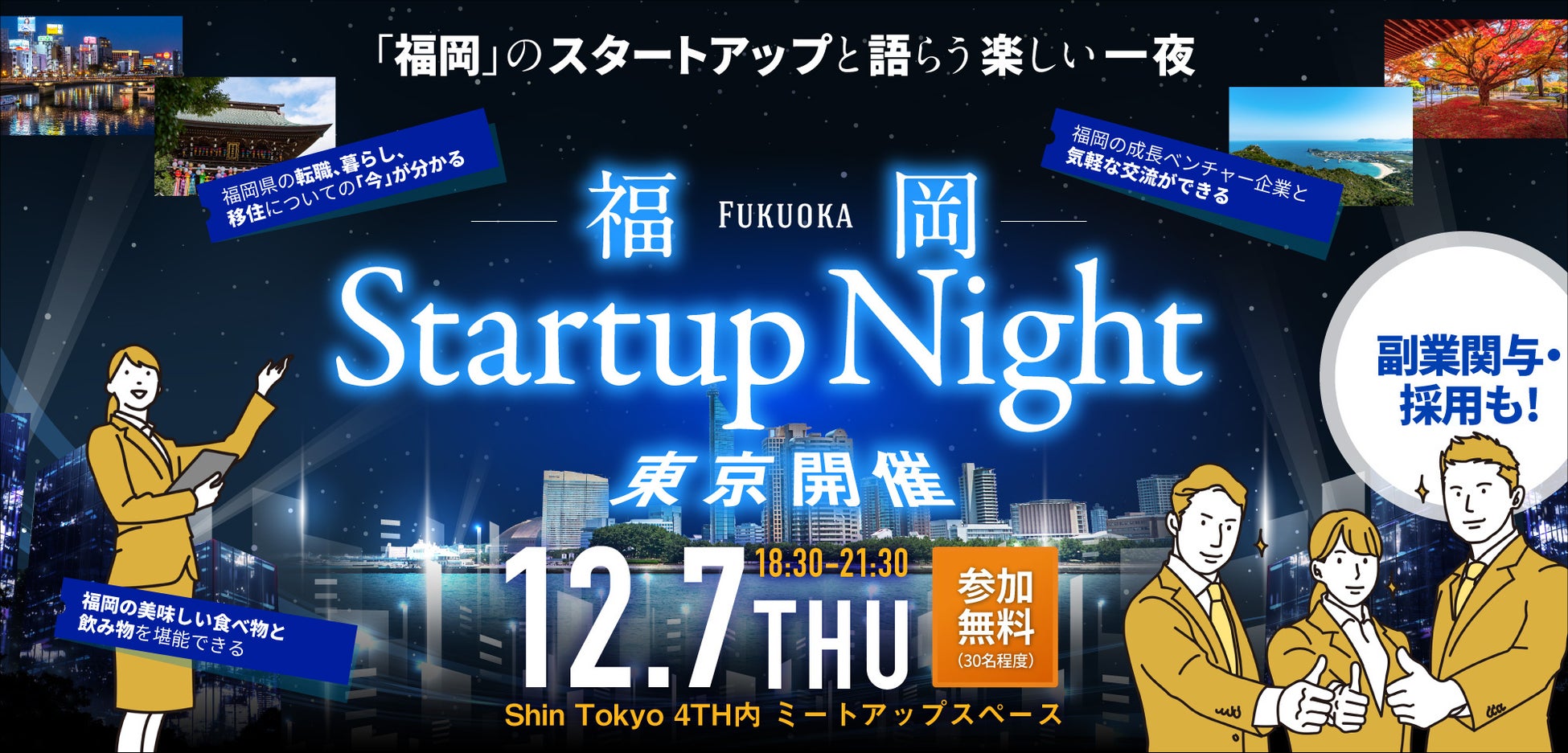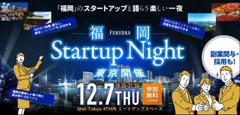 このイベントでは、福岡県を拠点にするスタートアップ企業や転職者、福岡県在住者、福岡県庁の関係者との交流会を開催します。
