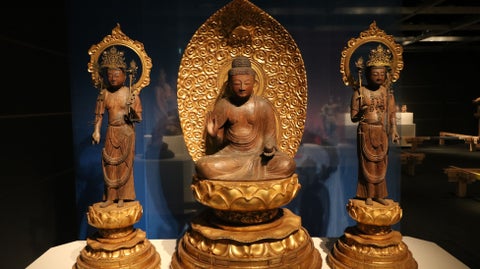 この展示では、古代から現代までの疫病や飢餓に苦しむ民衆の祈りをテーマに、薬師如来像を含む43体の仏像彫刻や古文書などを展示しています。