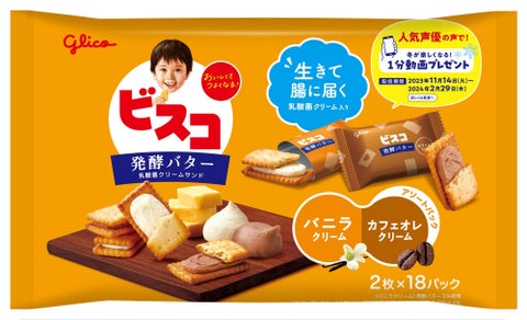 - キャンペーン期間中にビスコを購入し、二次元コードを読み取ると1分動画メッセージが楽しめる