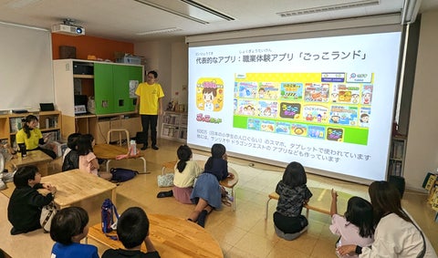 このワークショップでは、キャリア教育の講演やめんたいパークの紹介、子どもテスト体験が行われました。