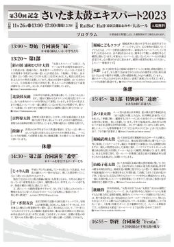 • 令和5年11月26日(日)に「第30回記念さいたま太鼓エキスパート2023」が開催