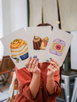 - 食べ物アート作家鴨志田和泉氏のイラストを使用したポーチがプレゼント
