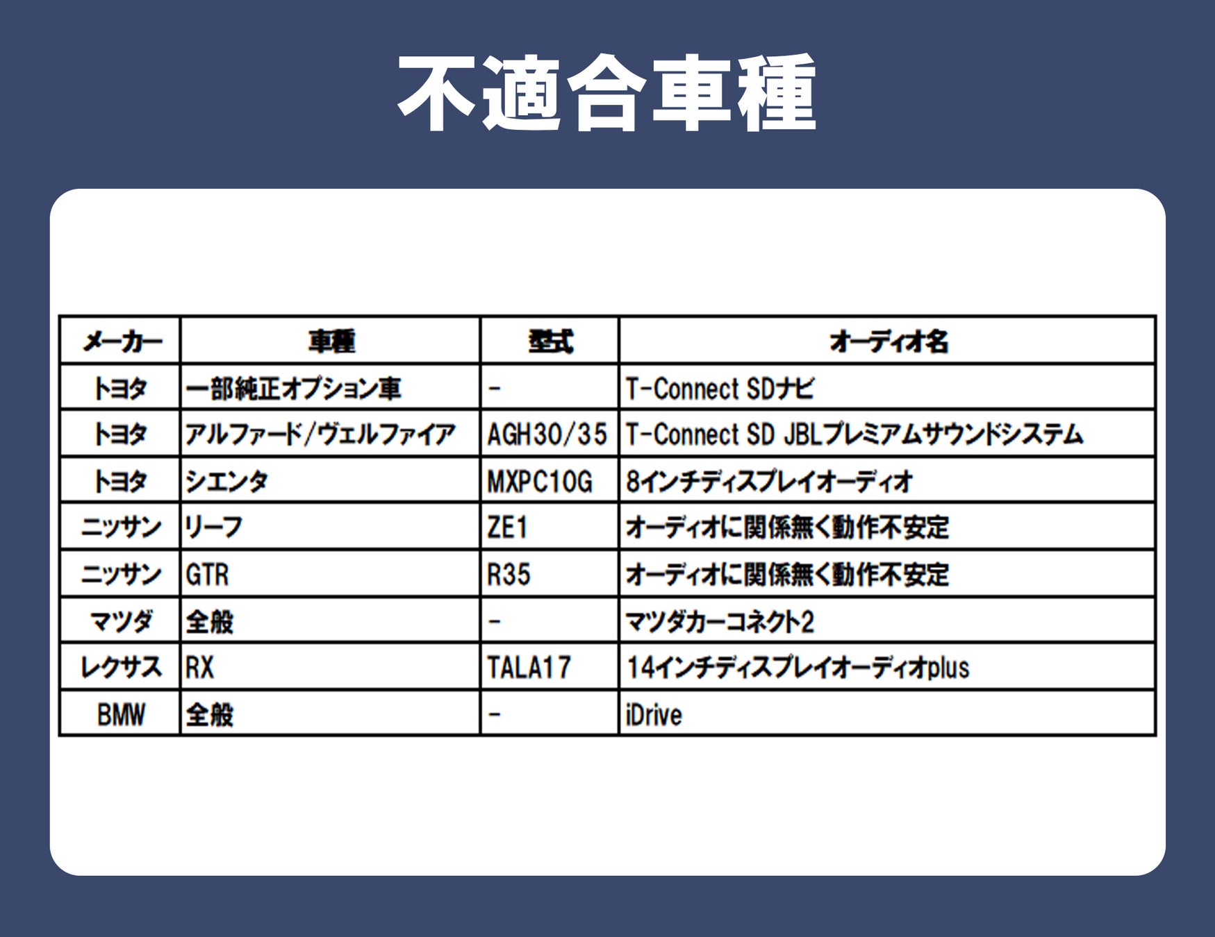 ※以下、既に適合もしくは不適合の車種となり、今回のモニター募集条件の対象外とさせて頂きます。