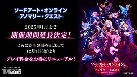 「ソードアート・オンライン -アノマリー・クエスト-」の開催期間が2025年1月まで延長されることが決定しました。
