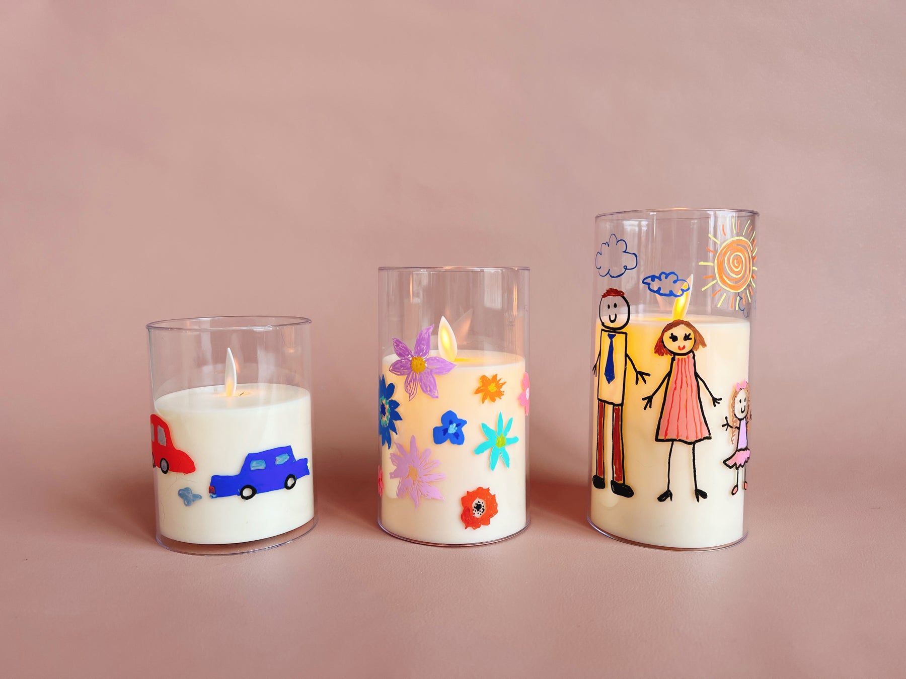 【Light Art Candle】アートキャンドルワークショップでは、ポスカで描いた絵をキャンドルに巻きつけてオリジナルのアートキャンドルを作ります。