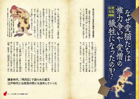 江戸時代の浮世絵や明治時代の玩具絵、化け猫映画や漫画など、さまざまなジャンルから様々なビジュアルを収録しています。