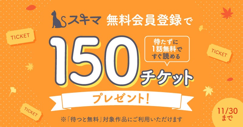 期間限定でスキマの無料会員登録をすると、全員に150チケットがプレゼントされます!このチケットを使えば、150話分待たずにお好きな作品を無料で読むことができます。