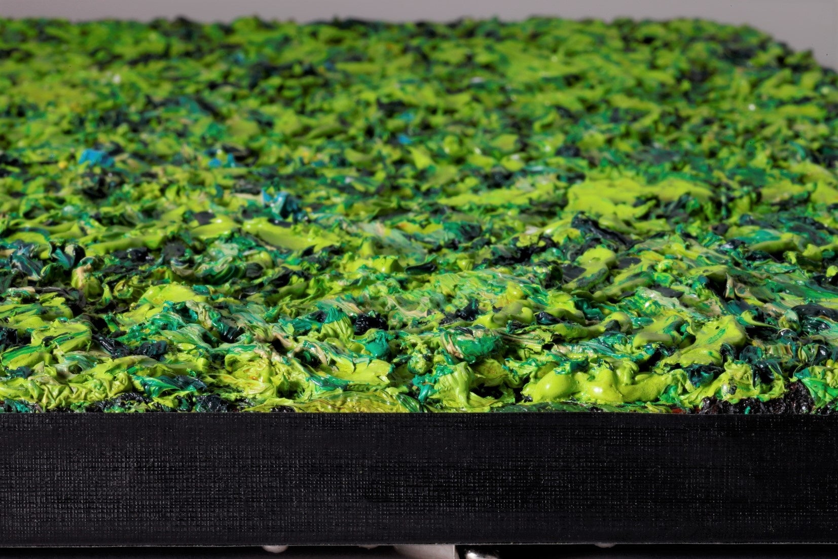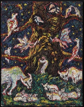 彼は自分の感情に駆られ、情熱を注いで絵の具を重ねています。
