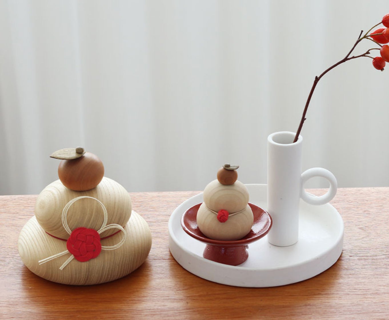 さらに、木の鏡餅も新登場し、ナチュラルな木を使った重厚なデザインが魅力です。