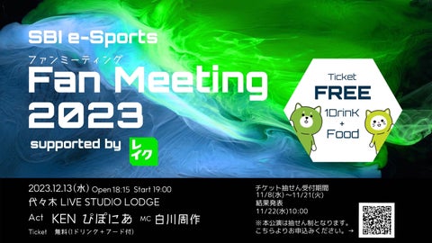 新生フィナンシャル株式会社は、SBI e-Sports株式会社が主催するプロゲーミングチーム「SBI e-Sports」のファンミーティングに協賛します。