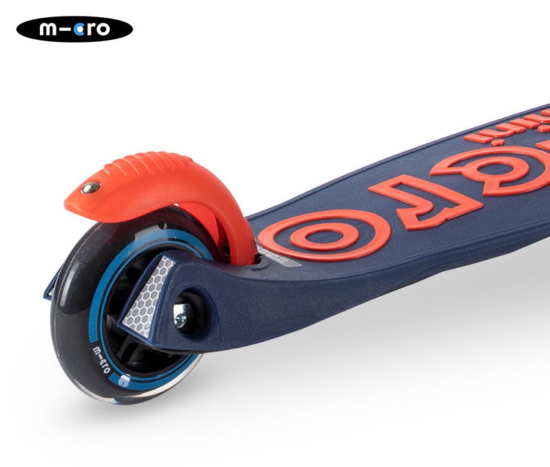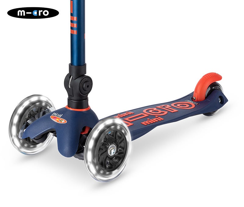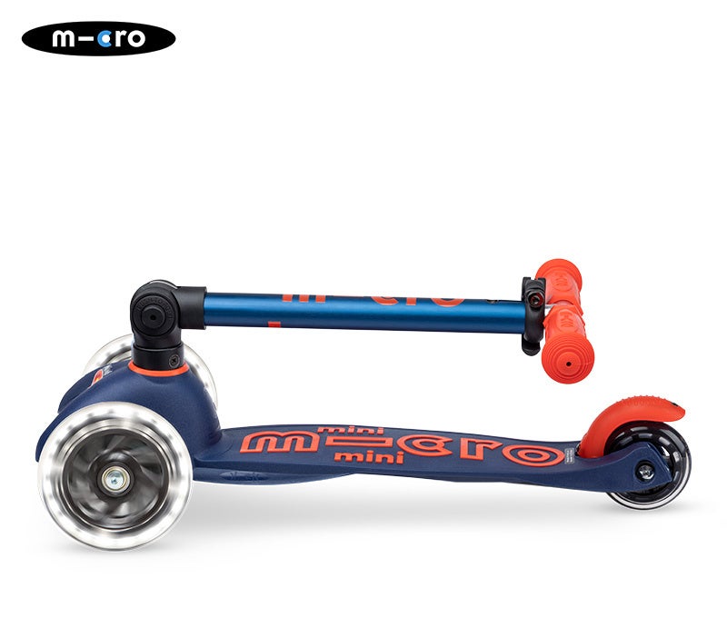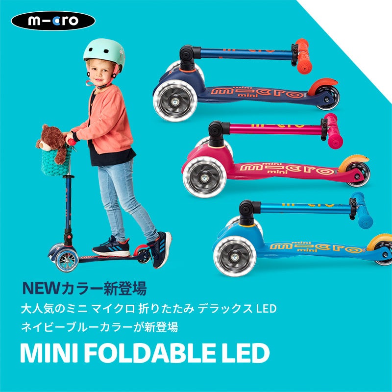 特に今回新しく発売したミニ マイクロ 折りたたみ デラックス LED_ネイビーブルー(Mini Micr Foldable Deluxe Led Navy Blue )は、折りたたみ可能なモデルとなっており収納に便利で、かつ軽量な為、お子様とのお出かけや旅行を快適にしてくれます。