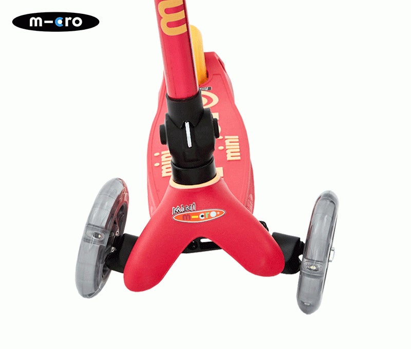 ミニ マイクロ 折りたたみ デラックス LEDキックボードは2歳から乗れる子ども用のキックボードで、前輪2つ、後輪1つの3輪構造により、2歳からの小さなお子様にも安定感のある使用感で走りの楽しさを提供しています。