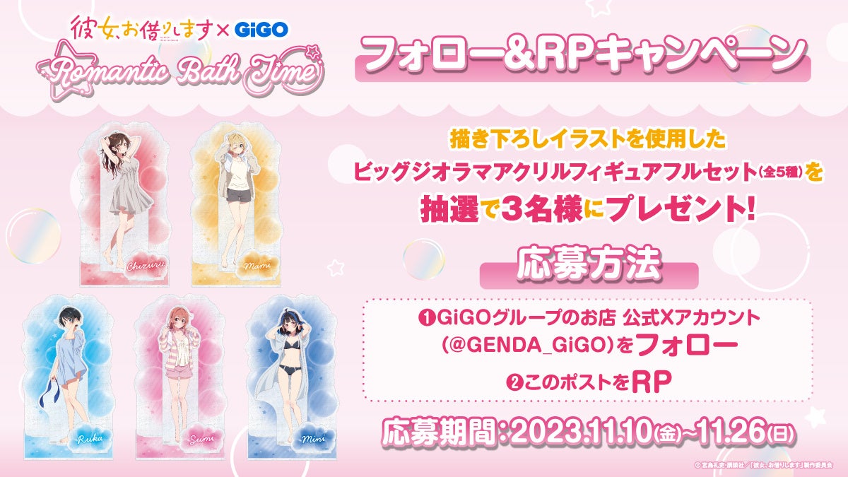 湯上り姿の彼女たちに熱視線!TVアニメ『彼女、お借りします』×GiGO Romantic Bath Time 開催のお知らせ