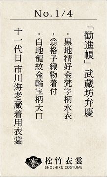 特別額装セットは1メートルを超える巨大なアート作品で、海老蔵時代に着用した《勧進帳》の弁慶の衣裳を使用しています。