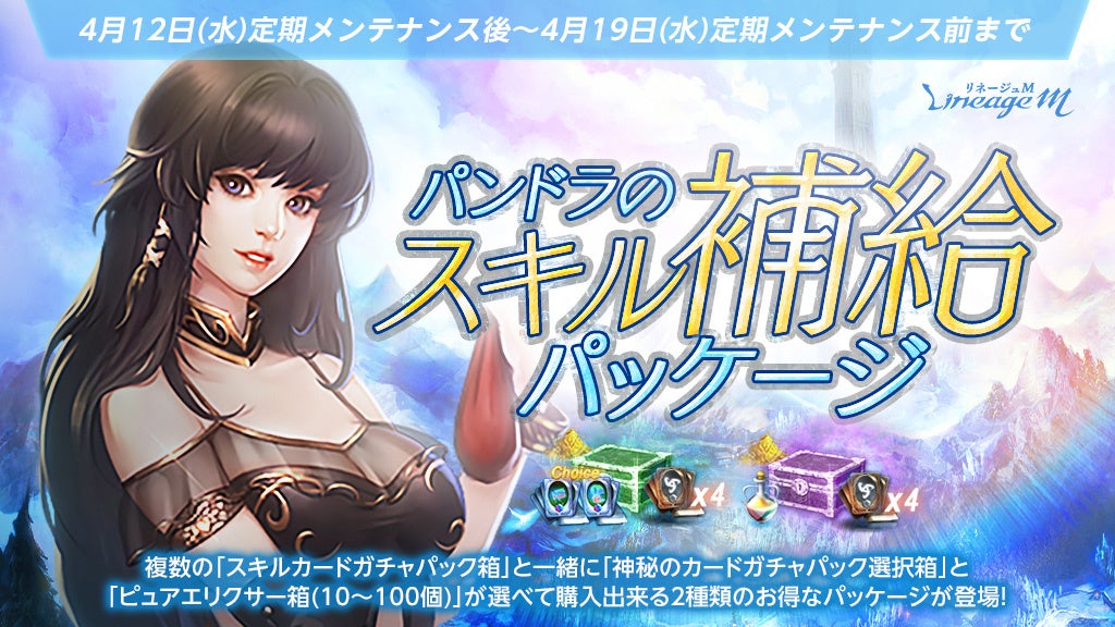 PCオンラインRPG「リネージュ」のモバイル版タイトル『Lineage M(以下、リネージュM)』のサービス、運営をしているエヌ・シー・ジャパン株式会社(東京都港区、代表取締役:金 澤憲(キム テクホン) 以下、エヌシージャパン)は、2023年4月12日(水)に、イベント「卯月の贈り物」の開催、「火竜の巣」フィールドリニューアルの実施、「パンドラの特別な腕章箱パッケージ」含む新たなパッケージの登場をお知らせします。