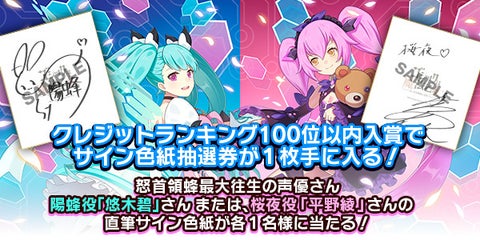 - 参加すると声優の悠木碧さんや平野綾さんのサイン色紙が当たるチャンス