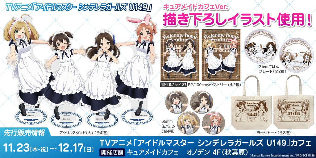 11月23日から12月17日までの期間、秋葉原のCURE MAID CAFÉでコラボカフェが開催され、一部のグッズが先行販売されます。