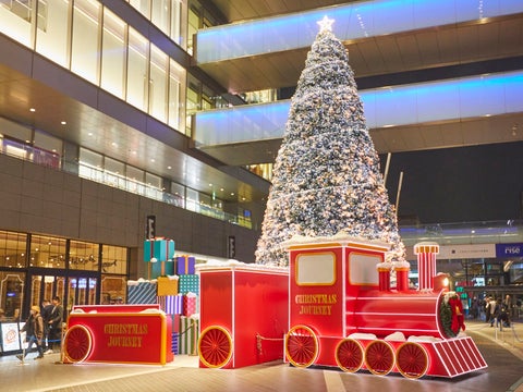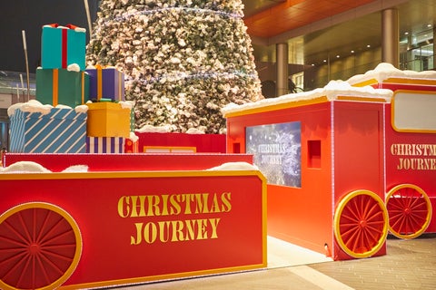 クリスマスツリーの前では、空飛ぶ特別列車のフォトスポットやオリジナルムービーも楽しむことができます。