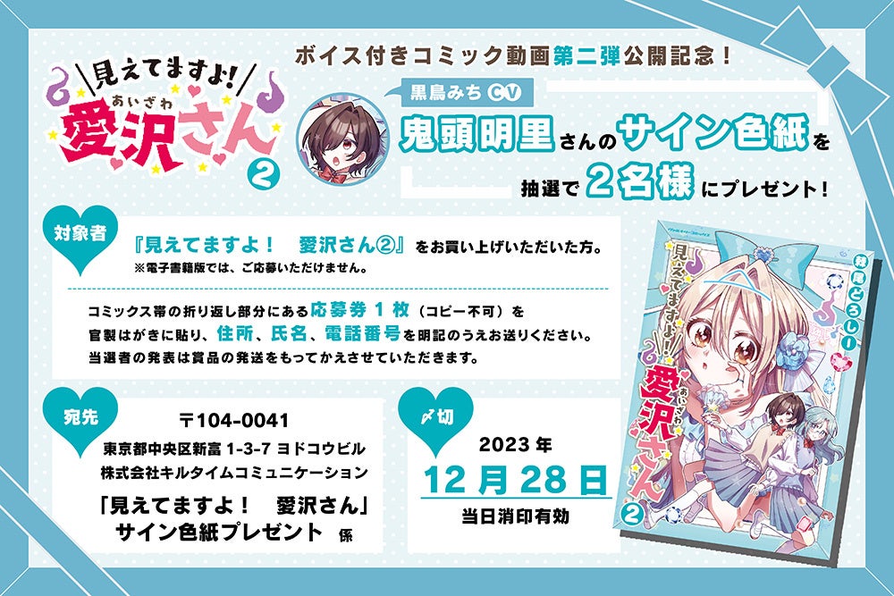 - 第2弾のボイス付きコミック動画公開を記念して、鬼頭明里さんのサイン色紙プレゼントも開催中