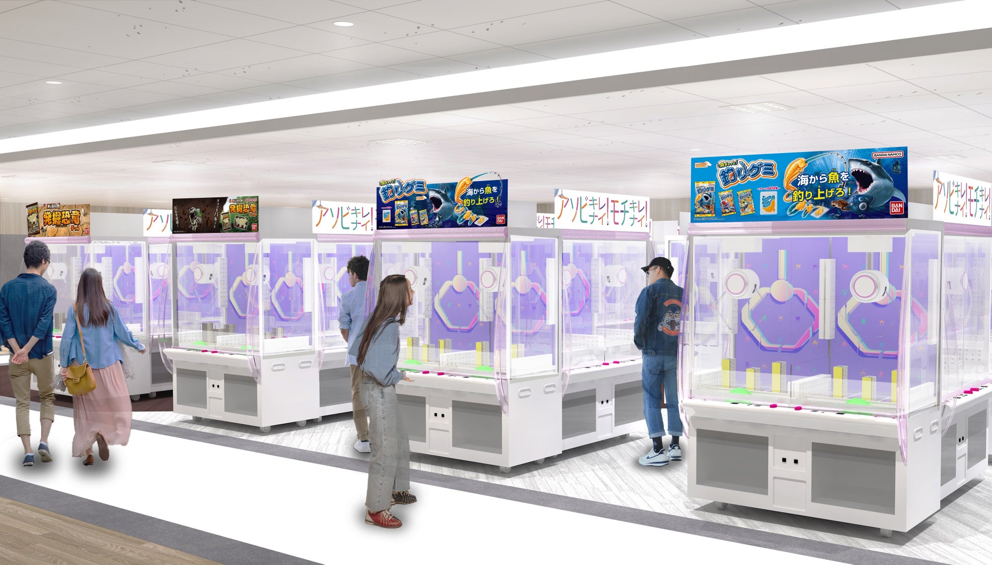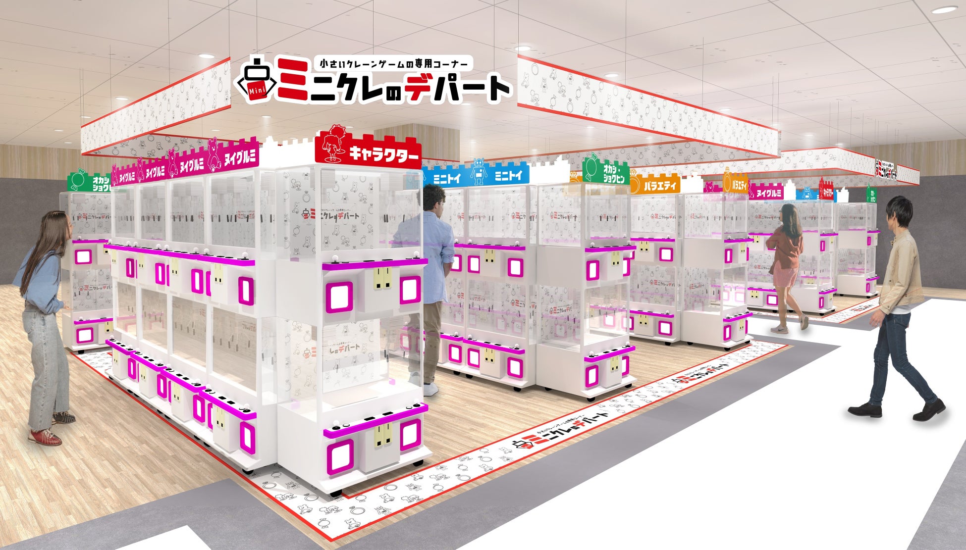 - クレーンゲーム専門店、ミニクレのデパート、バンプレヤ、お菓子コーナー、サンリオキャラクターズ