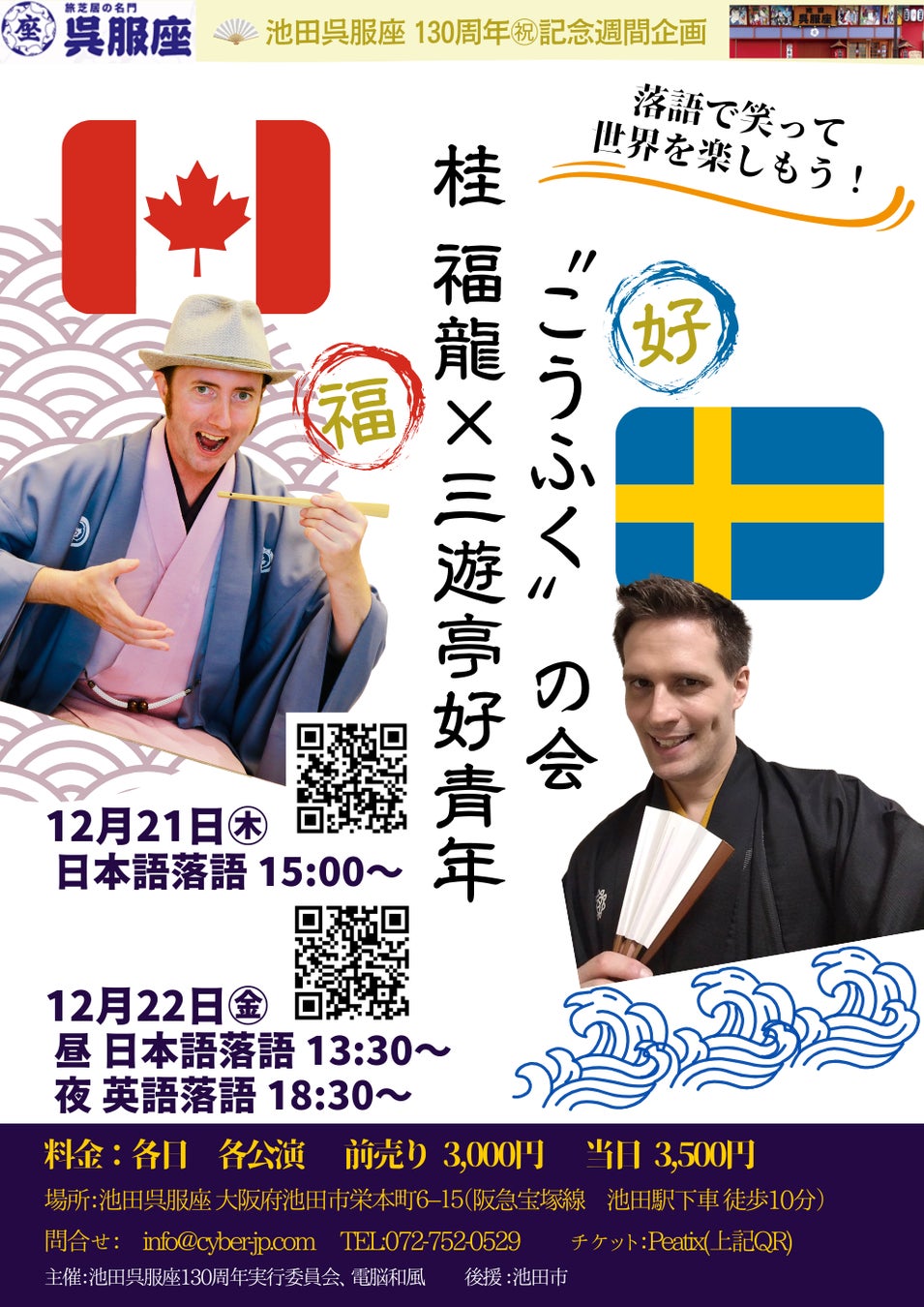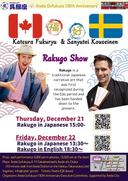 - 日本語落語は2023年12月21日と12月22日に、英語落語は12月22日に行われる