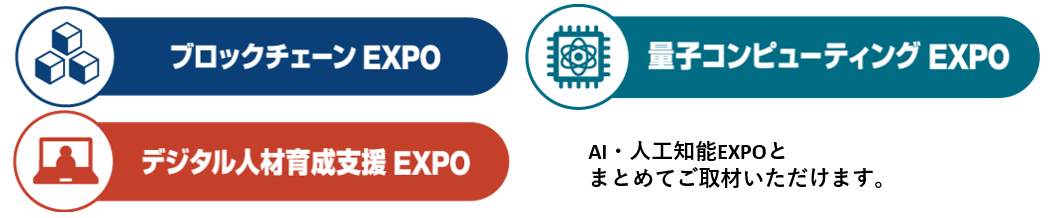 同時開催展には、ブロックチェーンEXPOや量子コンピューティング EXPOもある。