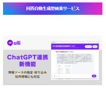 OpenAIのGPT-3.5 APIと、Allganizeの企業向け自然言語理解AIの知見や独自技術を組み合わせ、企業内の業務利用に求められる情報ソースの特定、社内文書に対応し、大量の情報の中から求める回答を総合的に簡潔に要約して提示します。