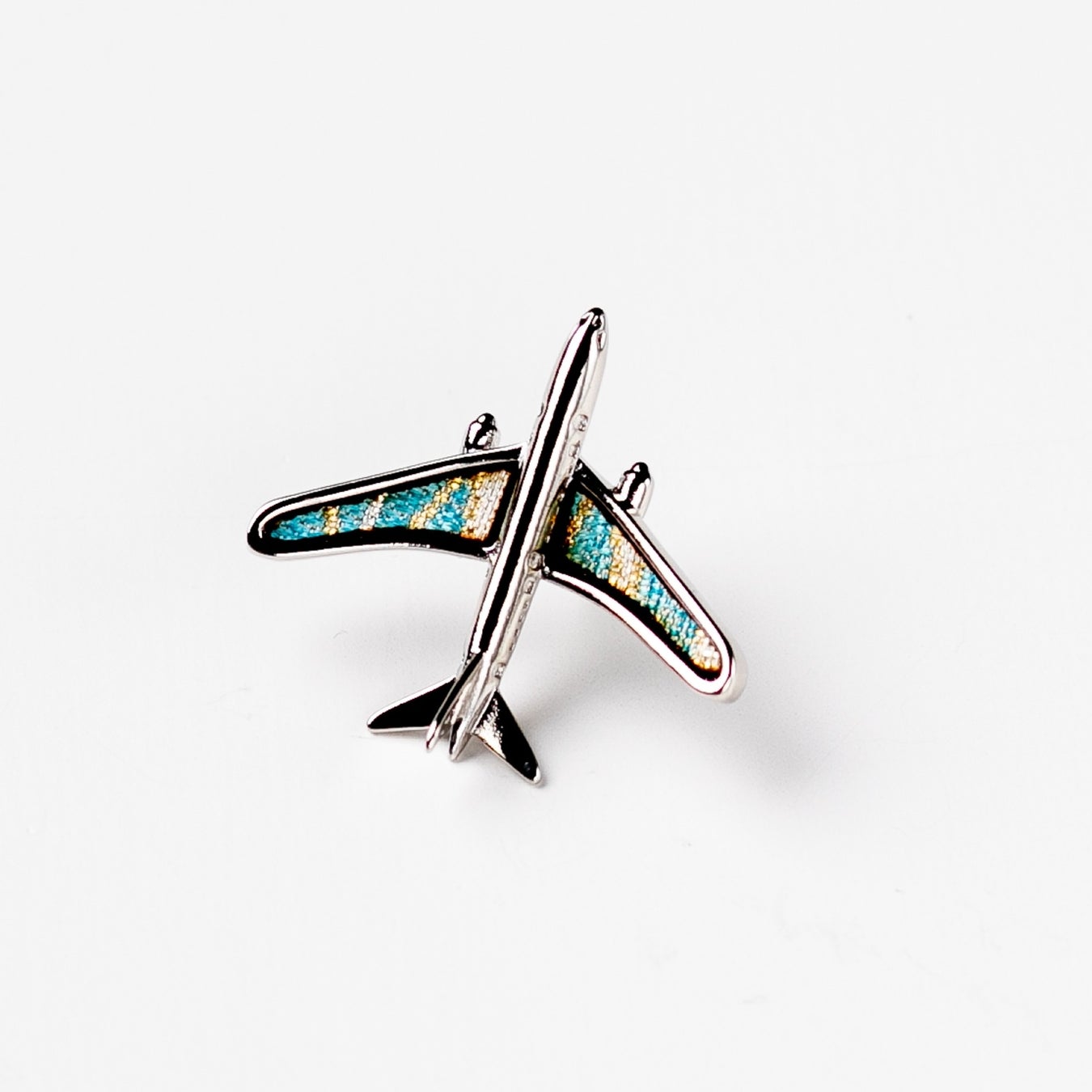 このプロジェクトでは、飛行機をかたどったピンバッジを制作し、伝統織物を使用しています。