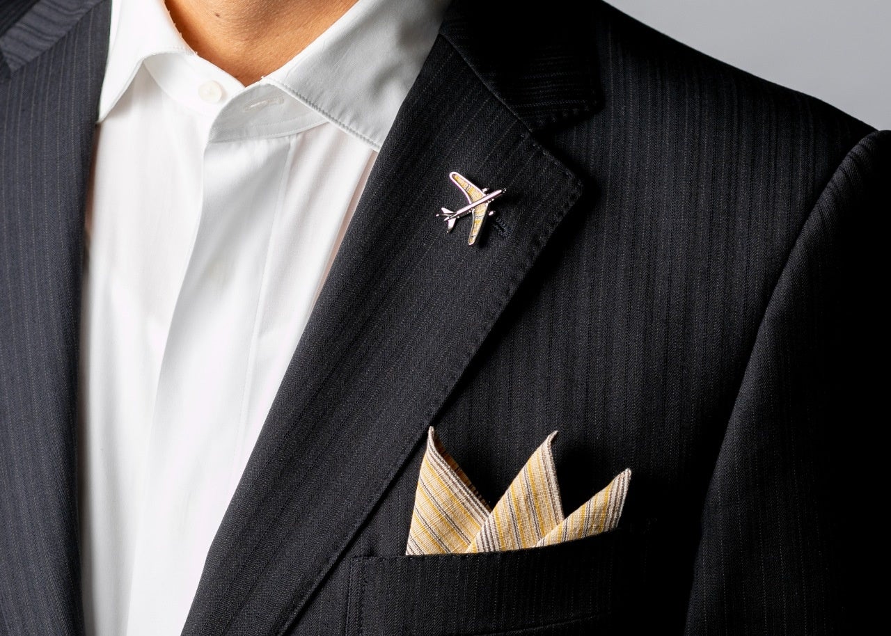 - プロジェクトでは飛行機をかたどったピンバッジを制作し、伝統織物を使っている