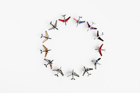 飛行機は旅の始まりを連想させ、人々の夢や希望を乗せて無限の空へ羽ばたく姿を表現しています。