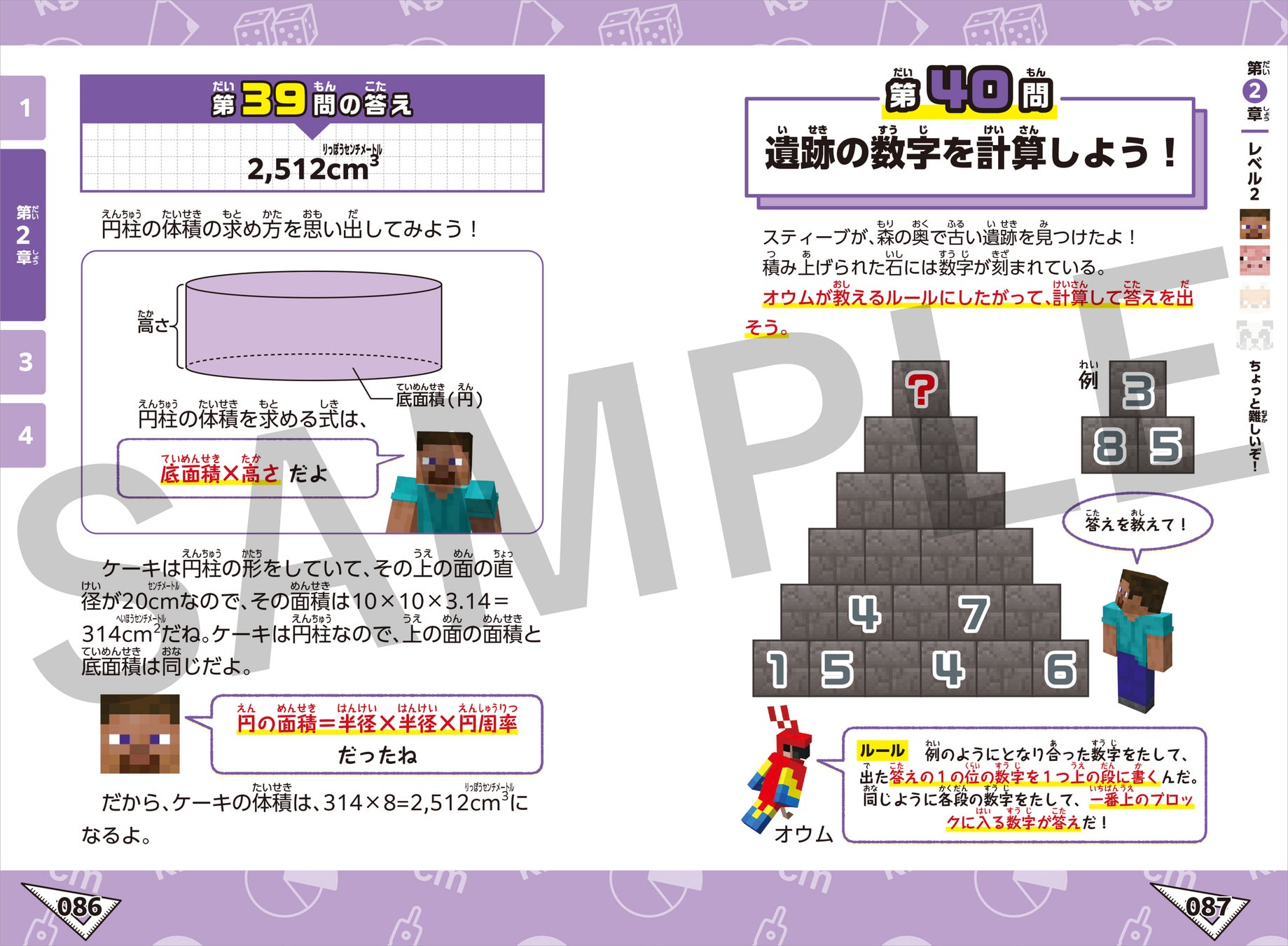 さらに、『小学校の学習に役立つ! マインクラフトで学ぶ算数クイズ』には、マインクラフトの世界観で算数の思考力を鍛えるクイズが100問掲載されています。