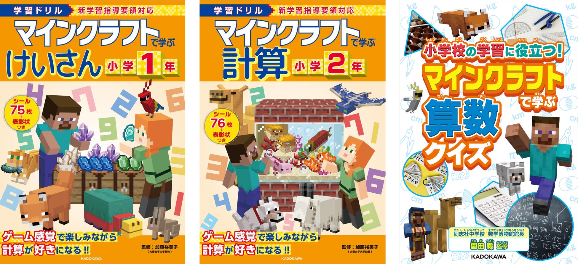 - 学習ドリル マインクラフトで学ぶけいさん 小学1年、学習ドリル マインクラフトで学ぶ計算 小学2年、小学校の学習に役立つ! マインクラフトで学ぶ算数クイズ