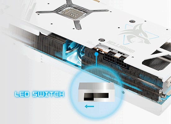 - Radeon RX 7800 XT、ホワイトカラーの3連ファン、日本メーカー製のダブルボールベアリング、アイスブルーとグレーシャーホワイトの2種類のLED、OCモードとSilentモードの2つのBIOSモード