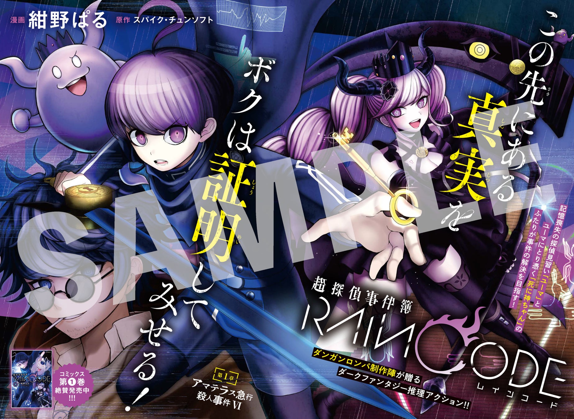 センターカラーは『超探偵事件簿 レインコード』で、ダンガンロンパ制作陣が贈るダークファンタジー推理アクションです。