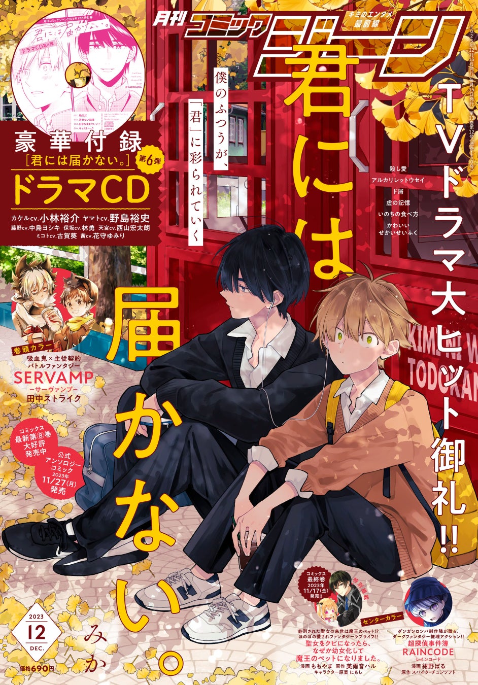 - 君には届かない。、SERVAMP-サーヴァンプ-、超探偵事件簿 レインコード、聖女をクビになったら、なぜか幼女化して魔王のペットになりました。、月刊コミックジーン 2023年12月号