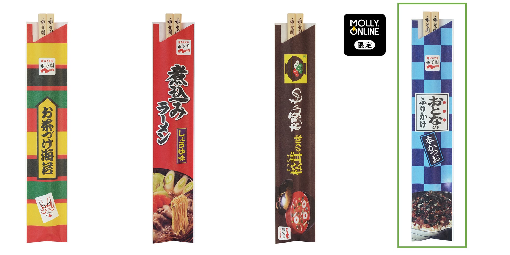 割り箸ペンには、モーリーオンライン限定デザインの「おとなのふりかけ」柄もあります。